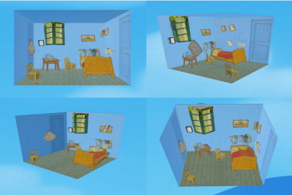 本研究開發了一套自動化系統,能夠在短時間內將各類畫作轉換為 3D 虛擬實境(VR)場景。系統整合語意分割、深度估計、圖像補全等多項 AI 模型,並透過Triplane Gaussian Splatting 技術進行3D重建,還原畫作的空間層次。最終,自動化匯入 Unity 引擎,生成可自由探索的 VR 場景。整體系統不需人工建模,即可在 60 分鐘內完成一個 3D VR 場景的生成。使用者能自由漫遊於各種畫作風格的虛擬世界,體驗融合視覺藝術與空間感知的創新互動方式。本研究可廣泛運用在文化保存、遊戲開發與藝術推廣領域。